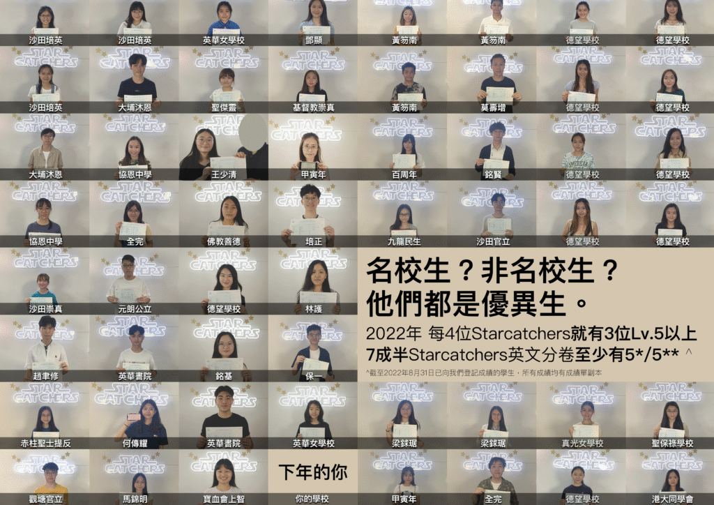 - 學生時代已於香港A level親奪英文科A級頂級成績,再於DSE親自應考英文科並一舉取得straight 5**成績(四份卷5**),能考能教