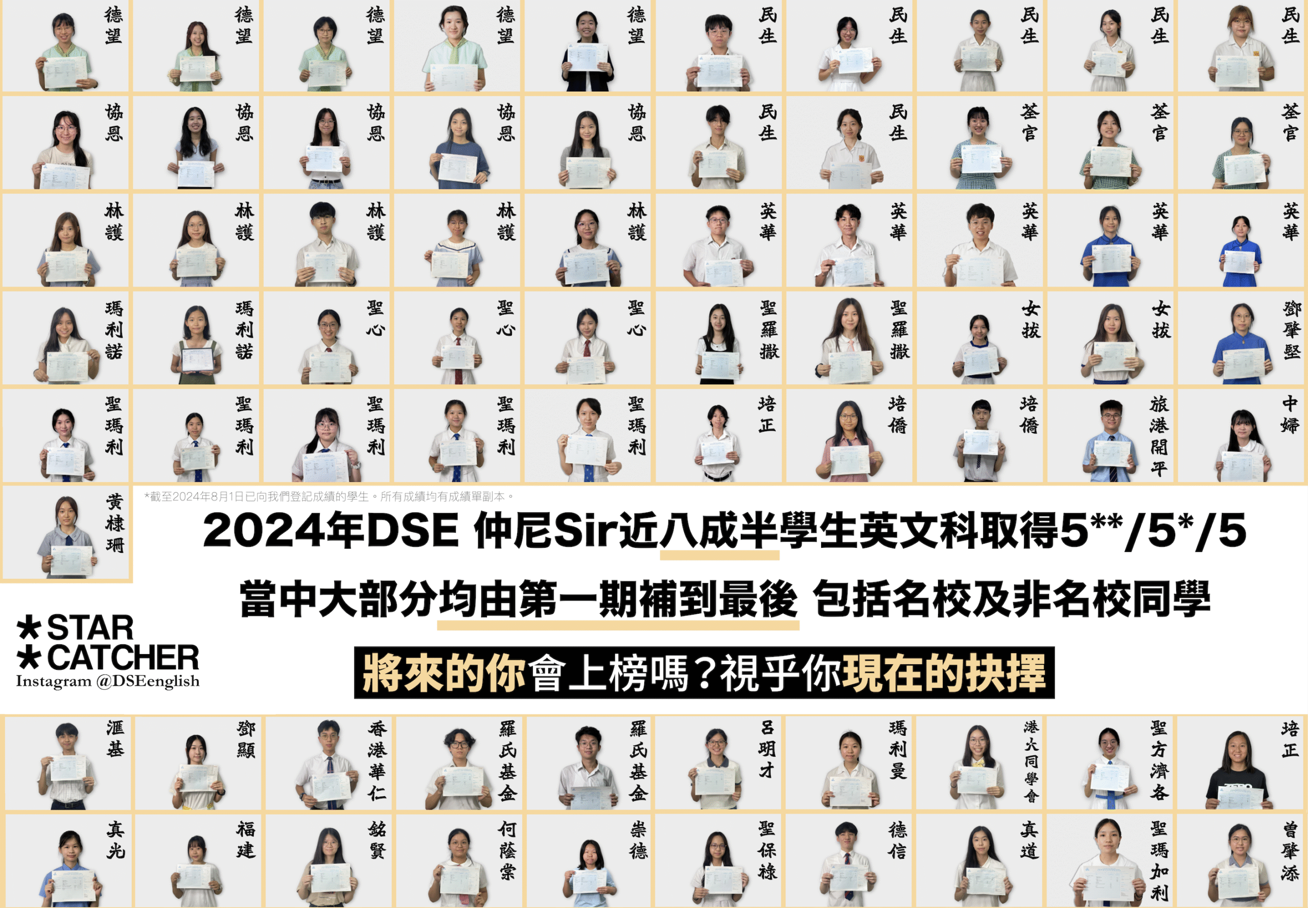- 2024年DSE有近8成半學生英文取得5**/5*/5,遠超全港DSE奪5**/5*/5比例8倍